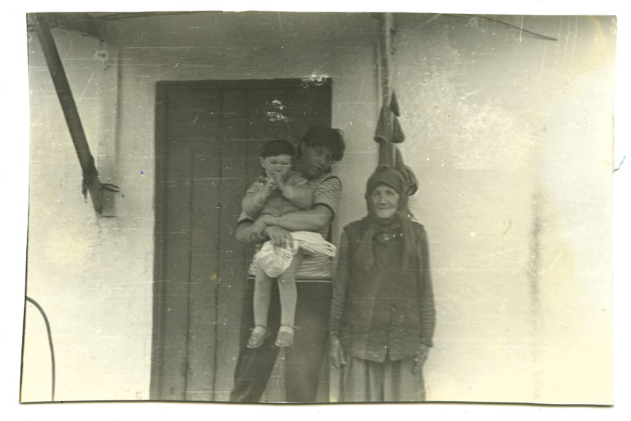 Vita, haar moeder en grootmoeder voor grootmoeders huis in Oekraïne (1988).